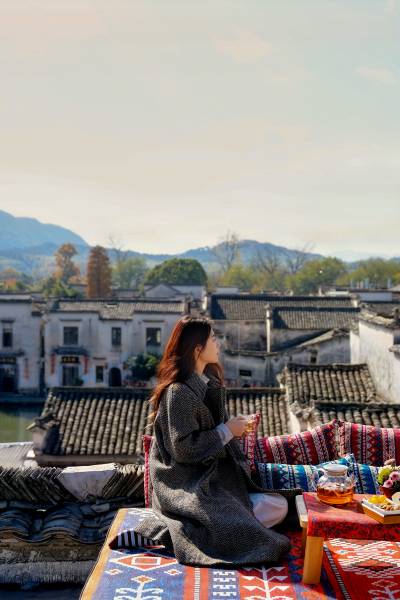 俯瞰宏村全景,网红轻奢民宿